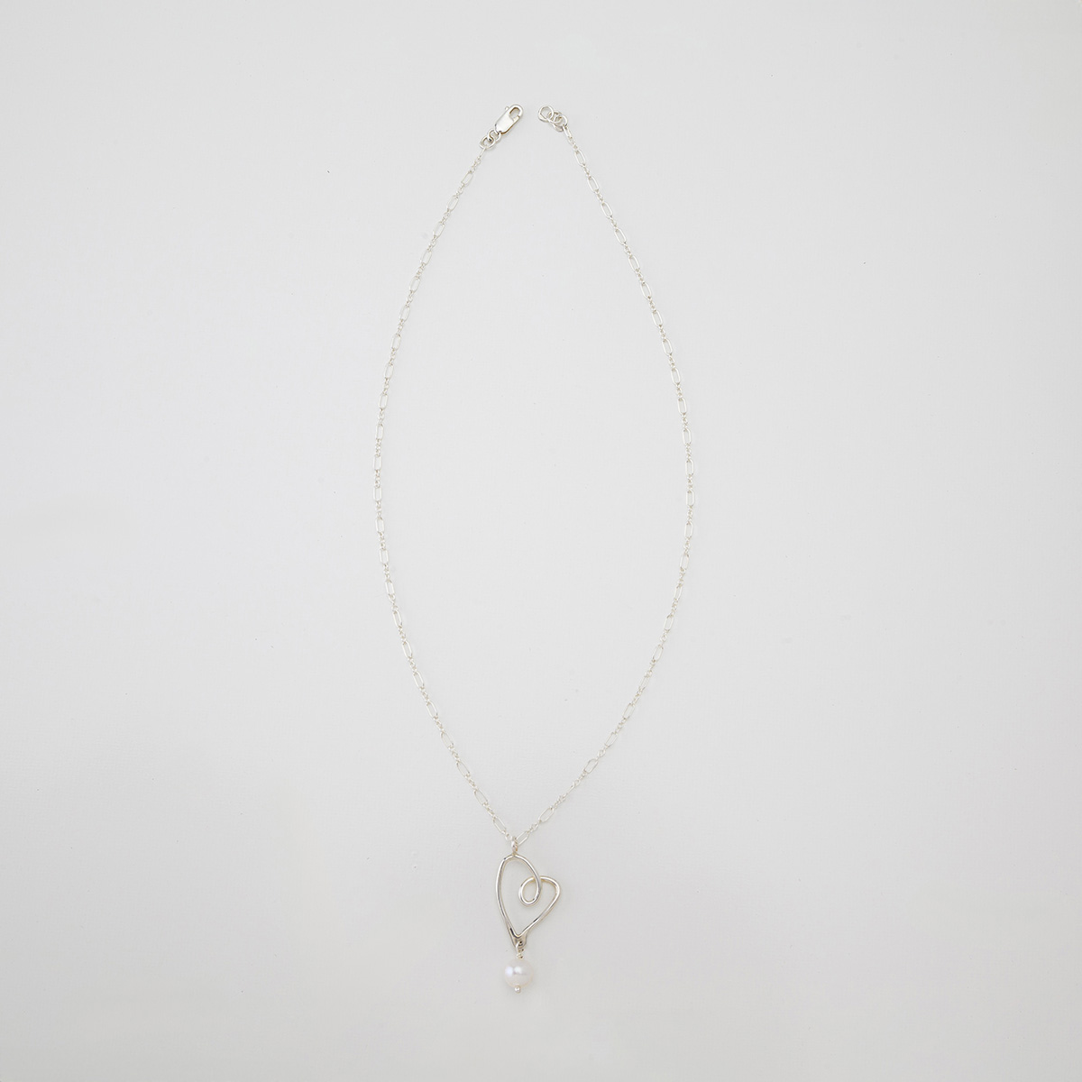 / H2-29: Silver and Gold Asymmetric Heart With Pearl 21″ Chain